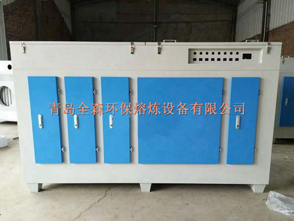 3、惡臭氣體利用排風設備輸入到本凈化設備后,凈化設備運用高能C波光束及臭氧對惡臭氣體進行協同分解氧化反應,使惡臭氣體物質其降解轉化成低分子化合物、水和二氧化碳,再通過排風管道排出室外。